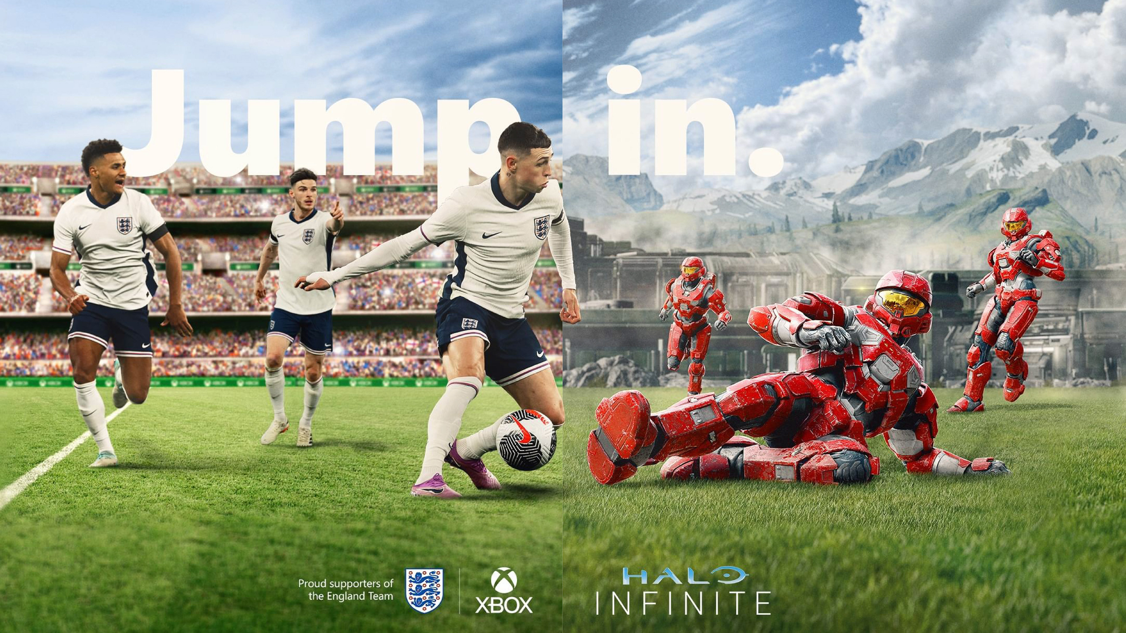 A Social campaign was run, with a split scene compositions of English and French National players interacting with characters from in game footage of key hero Xbox titles. The messaging being with all the on pitch Euro on, action do not forget to turn on your Xbox and jump in to your own world of action via an array of Xbox gaming titles.